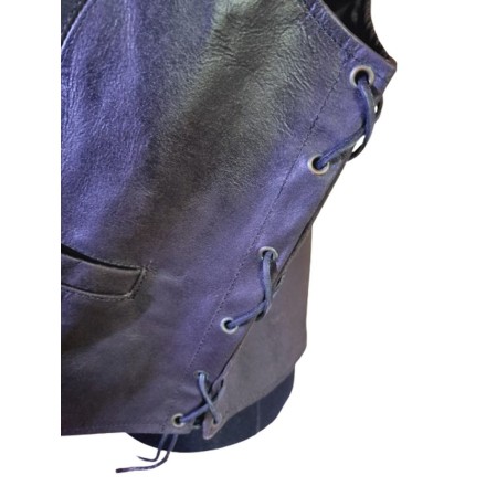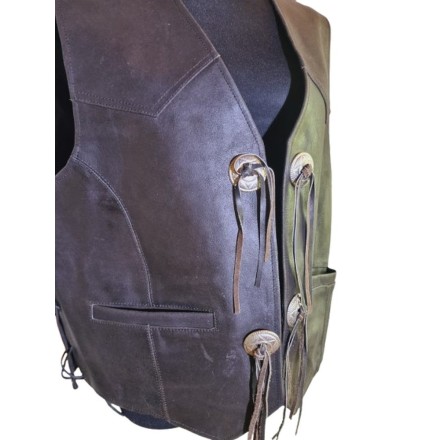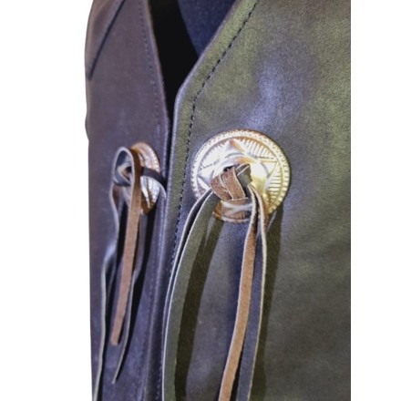 Erőteljes megjelenésű férfi motoros mellény, valódi bőrből, klasszikus sötét barna színben. Kényelmes, mégis tartást adó szabás, tág karöltők a mozgásszabadságért.